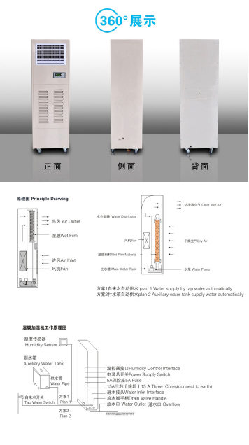·微電腦液晶顯示,±5%濕度精確控制·無壓縮機,無冷媒,無污染的環(huán)保產(chǎn)品·腳底萬向輪,移動方便自如·全塑外殼,流線型設計,美觀大方·操作簡單,缺水自動報警·具有凈化空氣的功能·特有濕度與故障顯示功能